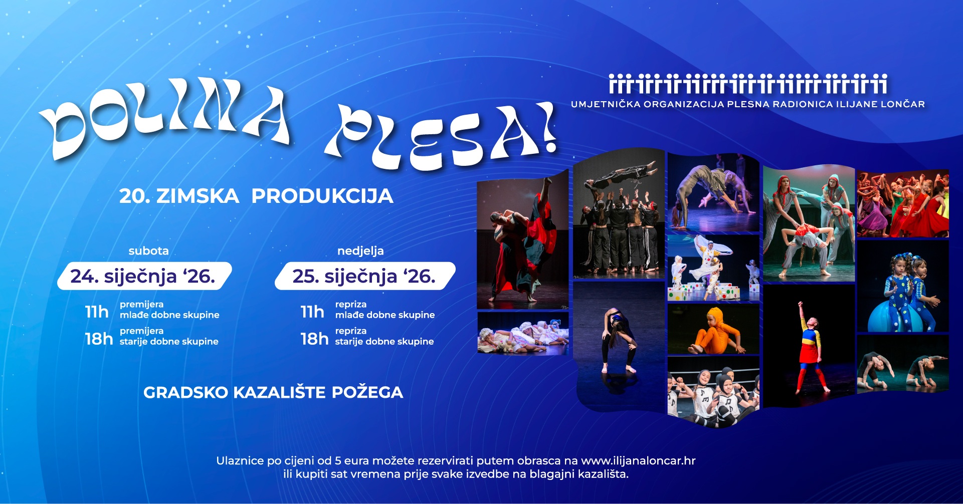 UO Plesna radionica Ilijane Lončar planira u povodu 26 godina djelovanja realizirati projekt naziva „DOLINA PLESA“ u sklopu 20. zimske produkcije. Projekt obuhvaća 130 plesača koji su umjetničko edukacijski program vođen od strane samostalne umjetnice, plesne pedagoginje i koreografkinje Ilijane Lončar provodili tijekom 5 mjeseci ( rujan – siječanj), a javne prezentacije kreiranog programa su predviđene u Gradskom kazalištu Požega 24. i 25. siječnja 2026. u 11 i 18 sati uz tehničku podršku Gradskog kazališta Požega. Raznovrsne teme primjerene uzrastu plesača, otplesat će se premijerno i reprizno u Požegi te gostovati na Šibenskom plesnom festivalu, Festivalu malih plesnih formi u Zagrebu , Susretu plesnih ansambala Hrvatske, Trešnjevačkim plesnim susretima, Požeškom kulturnom ljetu, a fragmentarno ćemo s koreografijama gostovati na festivalima, natjecanjima, produkcijama i susretima diljem Hrvatske.